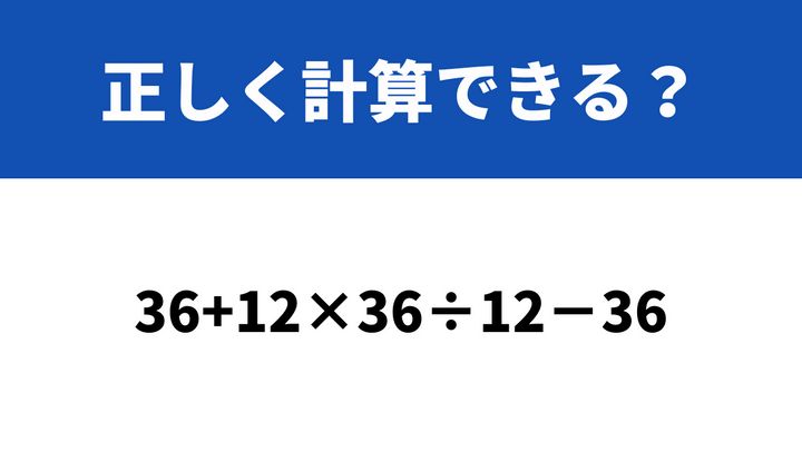 どこから計算するのが正解?「36+12×36÷12−36」→正しく計算できる?
