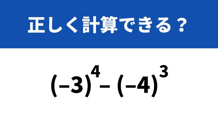 【累乗の問題】これどうやって計算するか覚えてる?「(−3)^4−(−4)^3」→正しく計算できる?