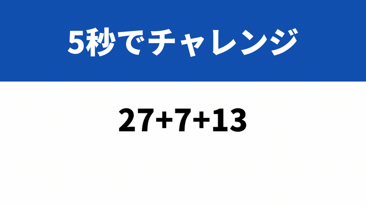 暗算で計算できる?「27+7+13」→5秒でチャレンジ!