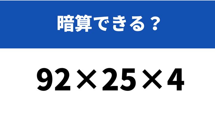 工夫して5秒で計算してみて!「92×25×4」→暗算できる?