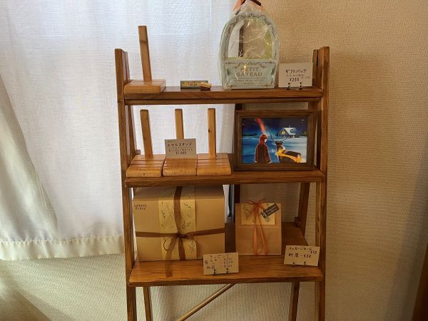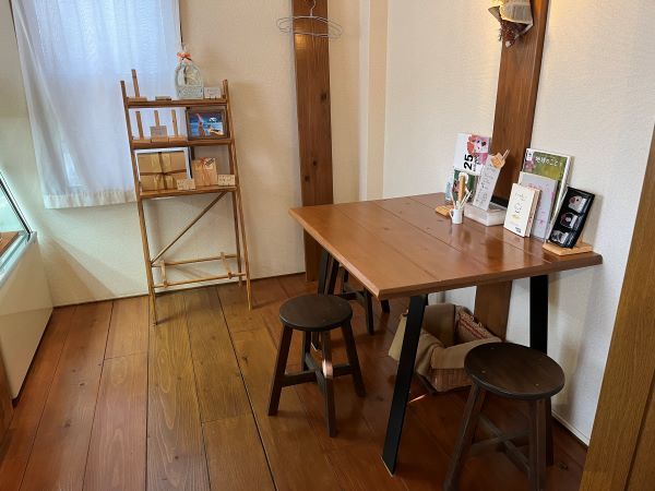 店内に入ると小さなテーブルが1席とギフトなどの展示があります。小さなテーブルではイートインもできるとの事ですので、空いていると利用可能ですのでゆっくりとできます。