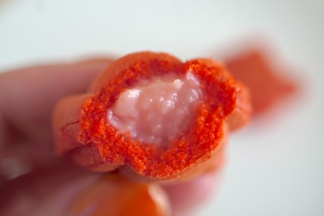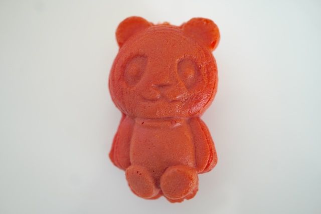 ここからはカラフル生地のぱんだ焼き。鮮やかな赤は「つぶつぶいちご」です。