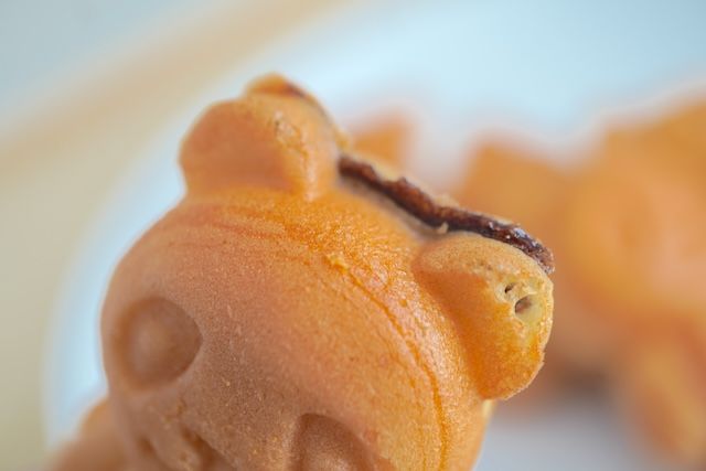 色のついていないパンダ焼きは、どの味なのかがわかりづらいのですが、中身が少しはみ出しているこの子はどうやら「チョコ」のようです。