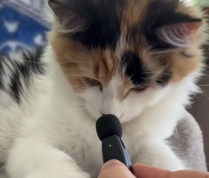 猫さんはじっとマイクを見つめて……。
