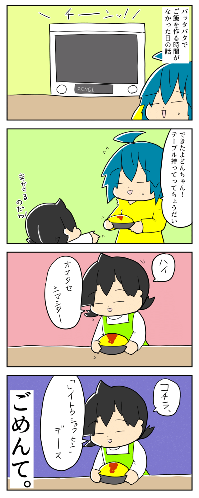2016年生まれの兄ぽこちゃん、2018年生まれの妹どんちゃんのママであるmochikoさんから、バタバタでご飯を作る時間がなかった日のお話です。