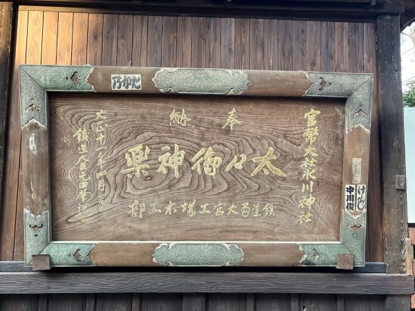 場所は氷川神社境内。三の鳥居をくぐった右手。「額殿」の場所です。