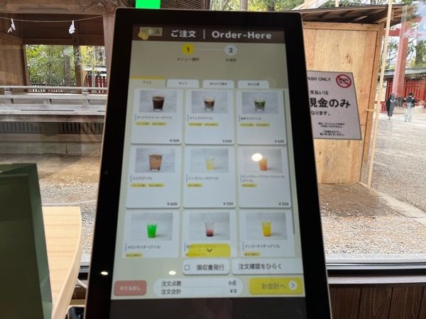 さていよいよ入店! 前払い制で、注文はタッチパネルで行います。支払いは現金のみです。