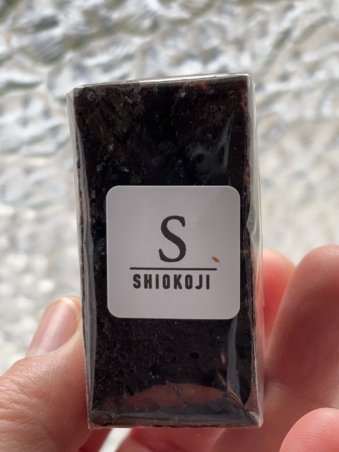 中でも個人的にとても好みだったのが「塩麹」。塩っけのあるブラウニーなのかな? くらいの軽い気持ちで食べたら、何やら覚えのあるクセのある風味が。思わず裏書の原材料名を見ると「大徳寺納豆」の文字。「大徳寺納豆」はその昔、中国から伝来し、室町時代に一休宗純禅師が大徳寺に伝えたと伝わるお寺の保存食です。お酒の好きな人からは酒肴としても好まれる京都の珍味。京都素材を取り入れながら、過度にアピールしないところがクールですよね。