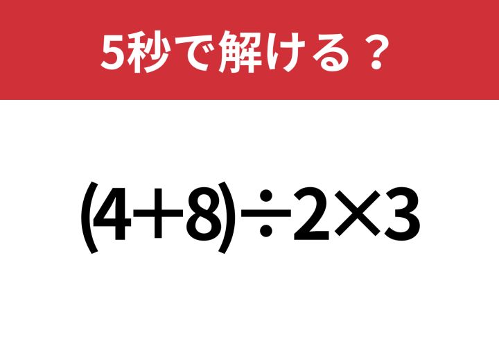 大人でも間違える人が多いかも?「(4+8)÷2×3」5秒で解ける?