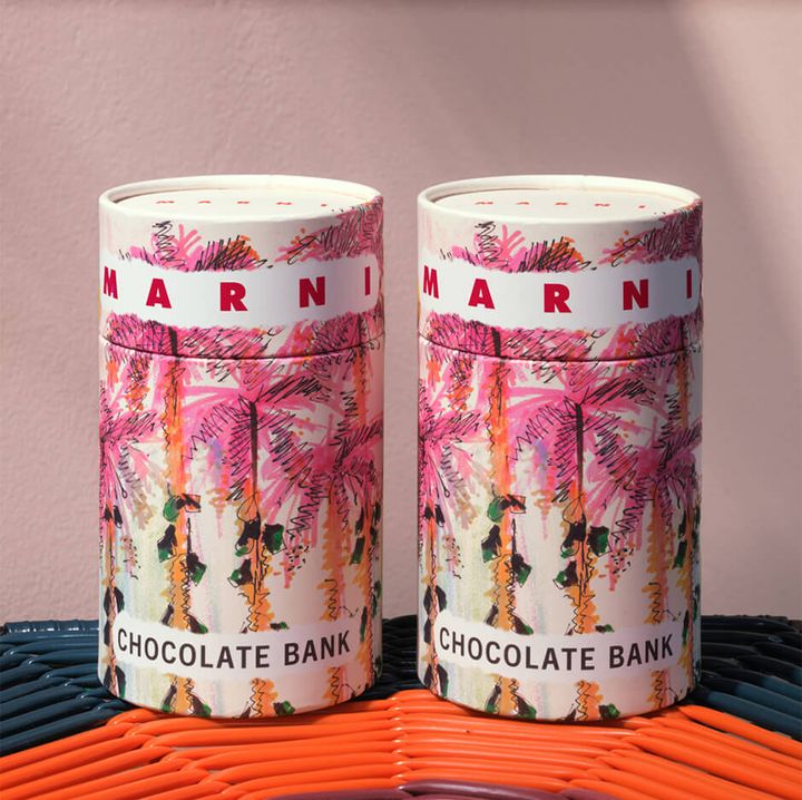 パッケージは、CHOCOLATE BANKの2025年のテーマである「PARADISE」へのオマージュとして、「MARNI」が今コラボレーションのためにデザインしたもの。
