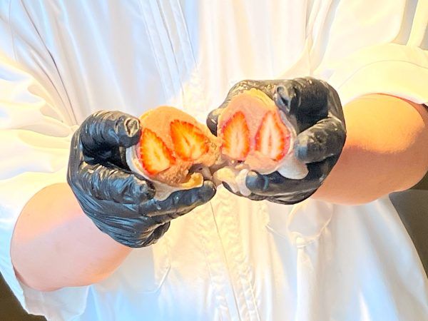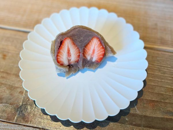 西荻窪にある「越後鶴屋」がお店のために、きび糖で作った餡と求肥で、あまおう苺を優しく包みます。これは、出来たてなことも相まって、とっても美味しかった!!