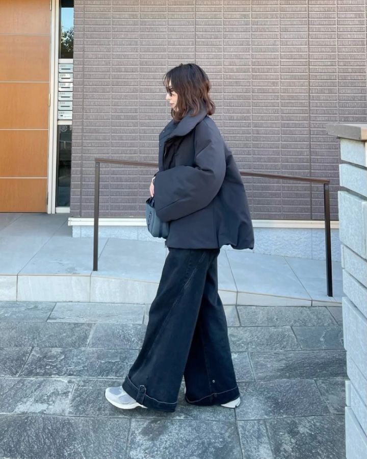 ハイブリッドダウンジャケット×ワイドパンツでモードな着こなし