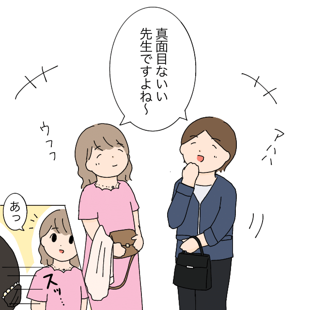 そして「真面目ないい先生ですよね~」あかねさんとヒロ君ママ、2人が声を揃えてそう言い、顔を見合わせて笑いました。すると、その横をスッと通り過ぎる人の姿が。