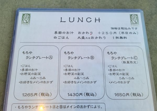 同行者は「もろやランチプレートA」をチョイス。こちらのランチプレートは、メインおかずが選択できるようです。
