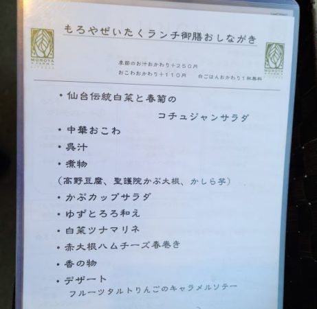 オーナーの萱場市子さんにお話しを伺いました。9代続く農家の萱場さん、仙台市内で4人の農家主婦と野菜の宅配をされたところから、作り手と消費者の皆さんとの直接的な交流をスタートされたとか。 その後、さまざまな交流をきっかけに、農家レストラン「もろや」をオープン。そして地下鉄東西線の開業に合わせて2015年12月に「もろやファームキッチン」としてリニューアルオープンされました。ちなみに「もろや」は屋号だそうです。