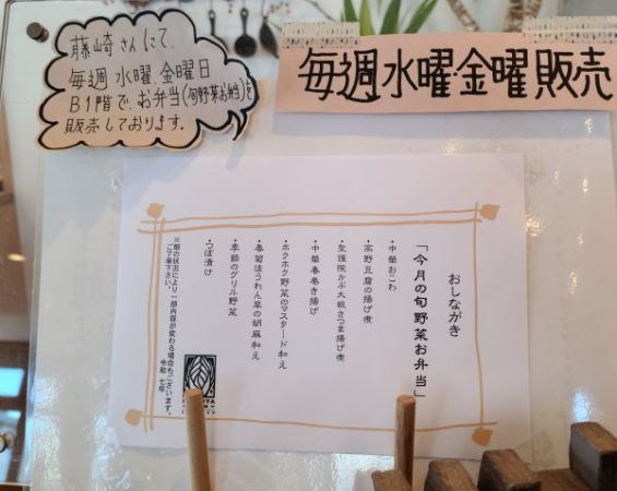 藤崎の地下1階で「今月の旬野菜お弁当」を毎週水曜日と金曜日に販売しているそうです。
