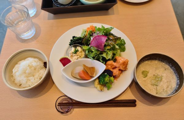 白米「ミルキークイーン」で、季節限定の呉汁もつきました。充実したランチプレートです。
