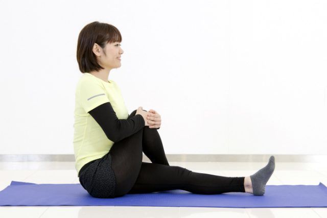 (2)片方の脚は伸ばしたままにし、もう片方の脚をクロスさせてひざを立てる