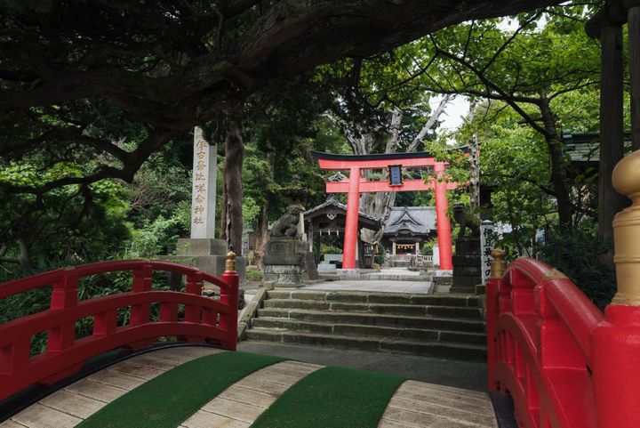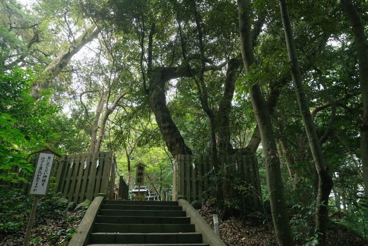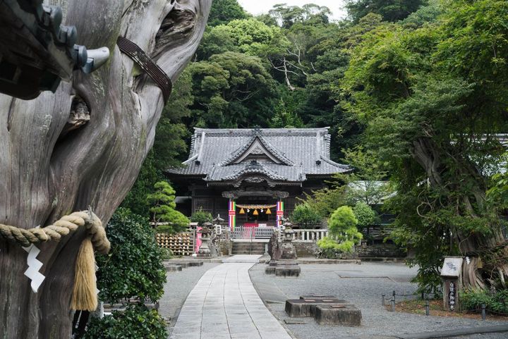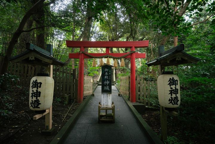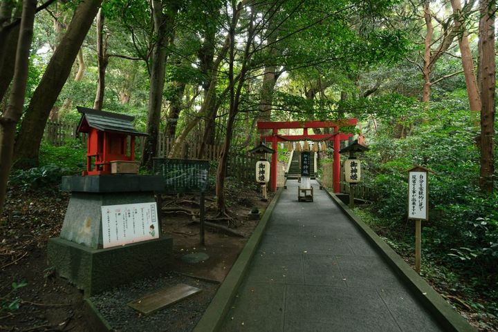 白い砂と限りないブルーを堪能したら、ビーチにある鳥居から歩いてすぐの白濱神社(しらはまじんじゃ)へ。正式には「伊古奈比咩命(いこなひめのみこと)神社」といい、縁結びと子育ての女性神を祭っています。
