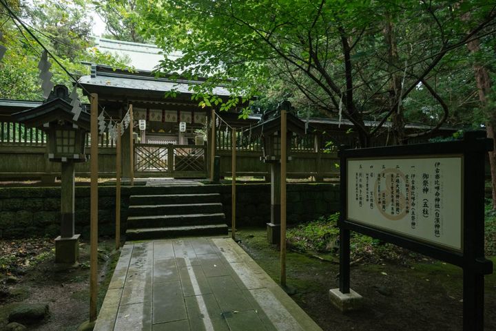 白濱神社に祭られているのは、主祭神である「伊古奈比咩命」、勇気と繁栄発展の男神「三嶋大明神」、縁結び芸能の女神「見目」、知恵と繁栄の男神「若宮」、勇気と武道の男神「剣の御子」の五柱(いつはしら)。