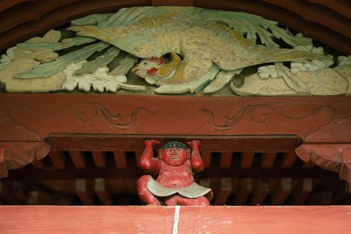 少し視線を上げると、精巧な彫刻の中に、チャーミングな縁の下の力持ちを発見しました。