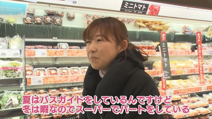 佐藤さん:「夏はバスガイドをしているんですけど、冬は暇なのでスーパーでパートをしています」