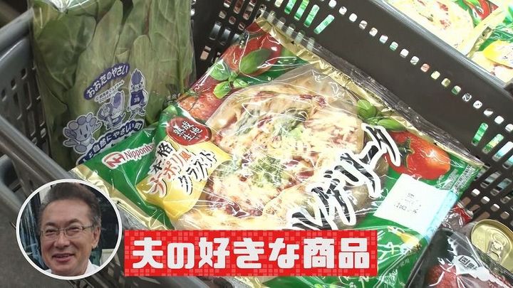 そのあとも、買い物カゴには、ウインナーやピザなど、夫の雅樹さんが好きな商品を入れていきます。