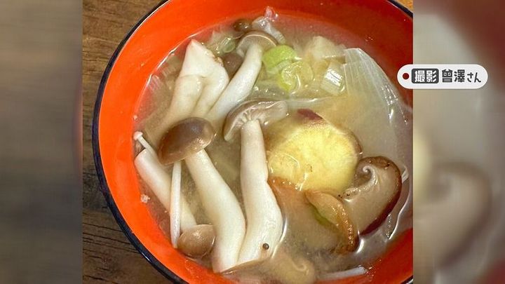冷凍保存したキノコは、毎日のお味噌汁など、色々な料理に使っていると言います。