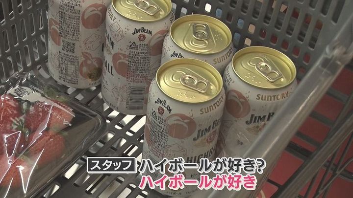佐藤さん:「ハイボールが好きです。ピーチハイボールに最近ハマってます。もっと買いたいけど歩きなのでこのくらいまでかなと」