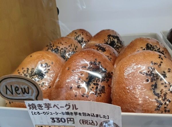 バレンタインベーグル以外にもたくさんのベーグルが揃っています。今回は以前より気になっていた焼き芋ベーグルもゲット。
