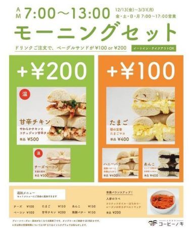 12月より新たに始まった好評のモーニングセット