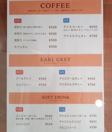 モーニングセットのドリンクは、コーヒー・紅茶(アールグレイ)・ソフトドリンクからお好きなものを選べます。
