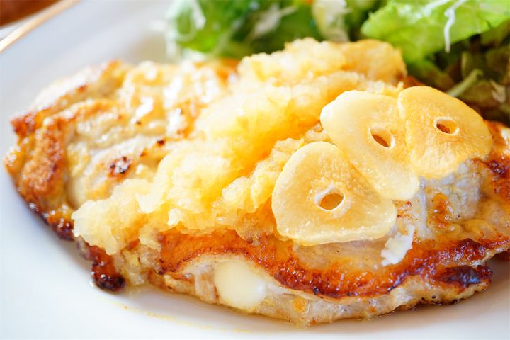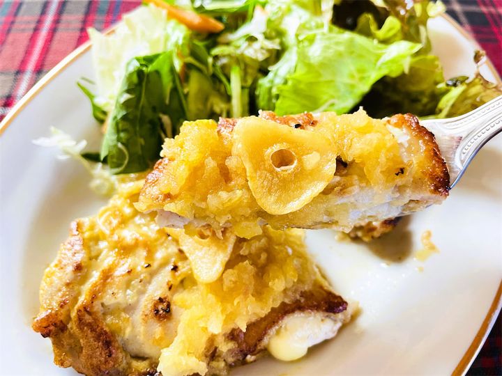 すりおろしりんごに漬け込んだおかげで、お肉がふっくらジューシーに!