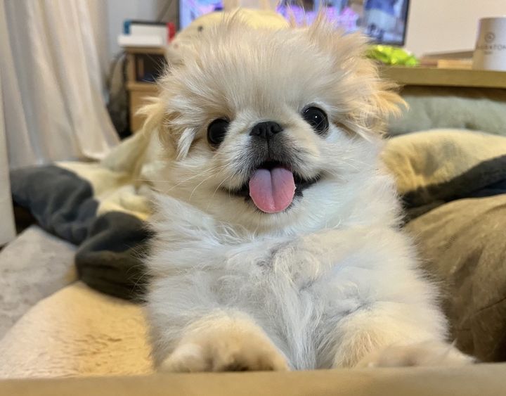 【わた報】ソファで横たわっていたら視界にわたスマイル入ってきてテレビ見えない X「ペキニーズのわた坊」(https://x.com/watabou_peki/status/1880594711452504515,2025年1月22日最終閲覧)
