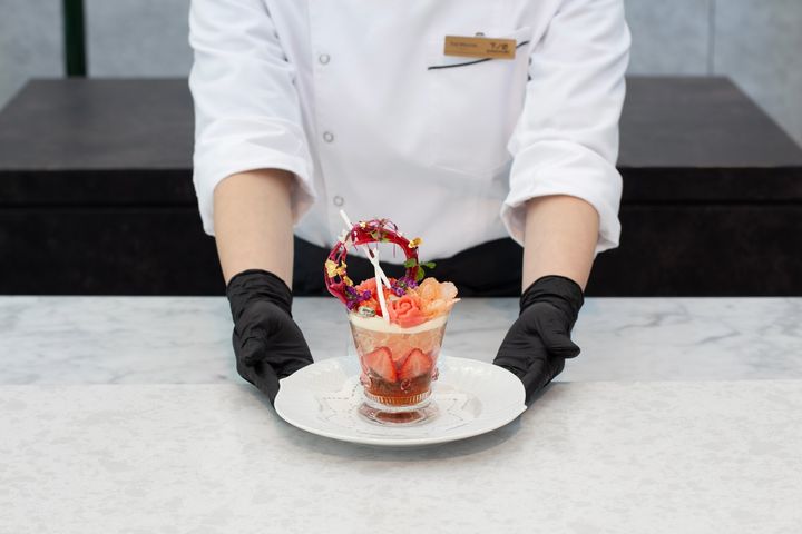 今回の「Strawberry Journey」では、高い品筆を誇る国産いちごの中から、パティシエールが厳選した5品種を使用。それぞれの特長を生かしたメニューを目の前で仕上げ、できたてを楽しむことができる。