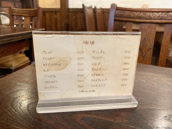 テーブルに置かれたメニューも、レトロ感。シンプルに、珈琲と裏面の紅茶だけのメニュー。純喫茶らしさを感じます。