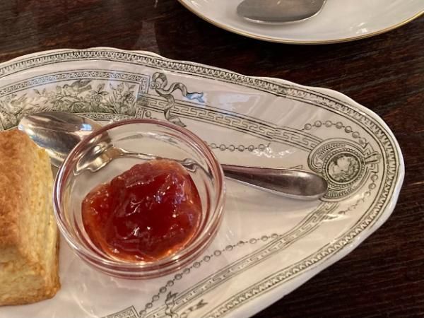 スコーンの入ったお皿が素敵。店主さんにお聞きすると、フランスのアンティークのものだそうです。ラヴィエと呼ばれるお皿。うっとり心惹かれる…。