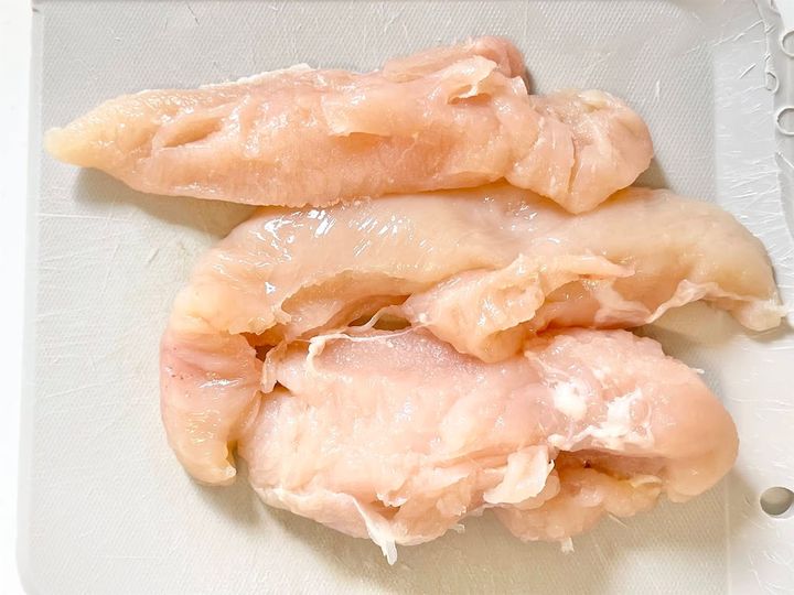 ささみの筋をフォークの間に挟み、キッチンペーパーなどで筋をつかんで引っ張ります。そうすると簡単に取れますよ。