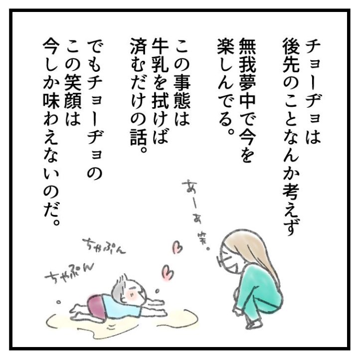 【育児マンガ】「牛乳のプールで泳いでる!?」赤ちゃんの衝撃行動でママの心に変化が!
