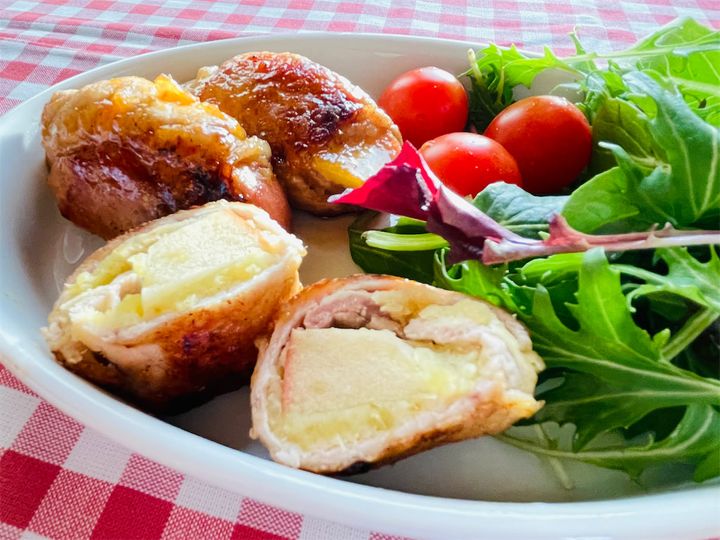 さつまいもでボリュームアップ♡「りんごの肉巻きロール」
