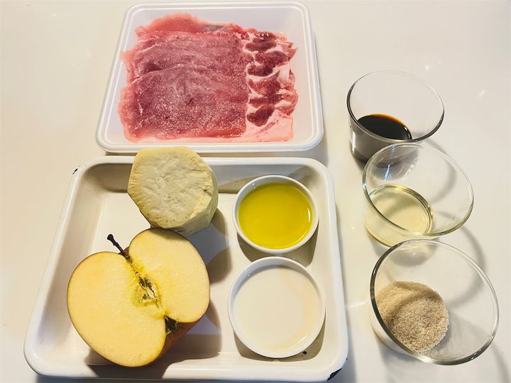 豚肉は煮からめたタレが香ばしく、中のりんごがしっとりやわらか~。