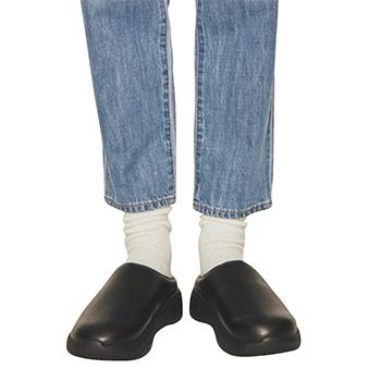 黒ボリュームスリッパ/klogg(ジャック・オブ・オール・トレーズ プレスルーム) ソックス/17℃(17℃ by Blondoll 横浜ジョイナス店) デニムパンツ/コレックス(アバハウスインターナショナル オンラインストア) 重厚なレザーとデニムの間に奥行きをプラス。