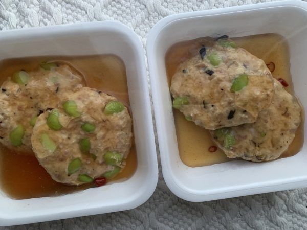 「豆腐ハンバーグ和風あん」は枝豆としいたけがたっぷり入っていて、やわらかいのにしっかりした食べごたえ。どちらも手作りの優しいお味で大満足でした。