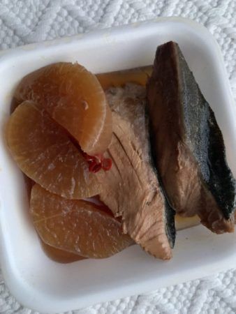 この日の我が家の夕食は、もちろん購入したお惣菜です。 甘辛く炊かれた「ブリ大根」はやわらかい大根に味がしみしみ!ブリも身がしまっていて素材の良さを感じました。