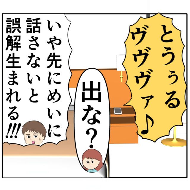 「あの、誤解があると思うので説明させて下さい」と先手を打とうとしたろみ緒さん。しかし、「え?けど」とジュリ実さんの夫がそれを遮ります。