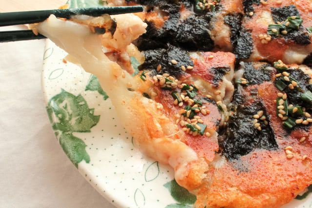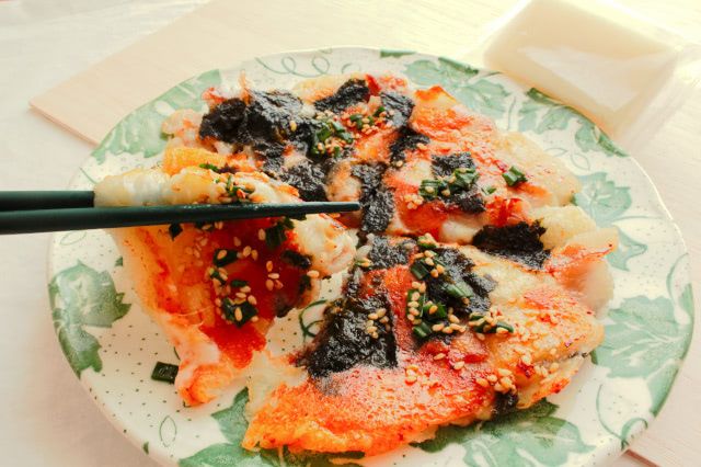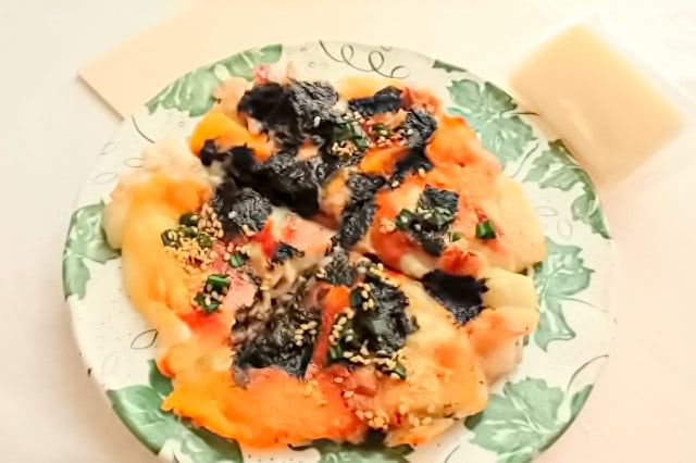 お餅にチーズと豚バラ肉!のりも混ぜて腹持ちのいい絶品チヂミに♪
