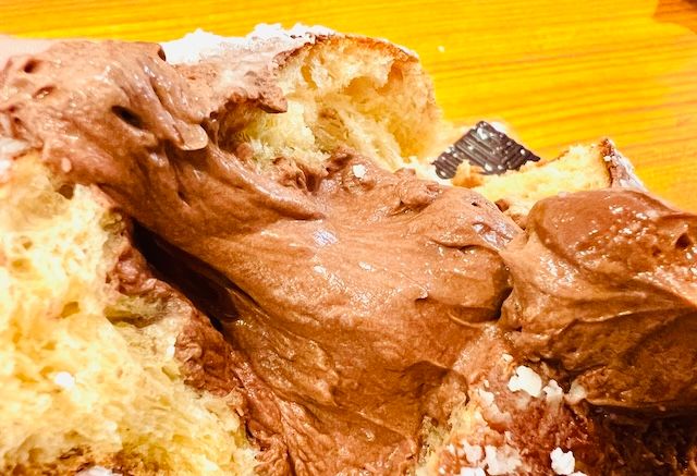 「チョコクリームベニエ」のふわっふわの生地に入っているのは、チョコレートがしっかり感じられるクリーム。満足感いっぱいのドーナツです。