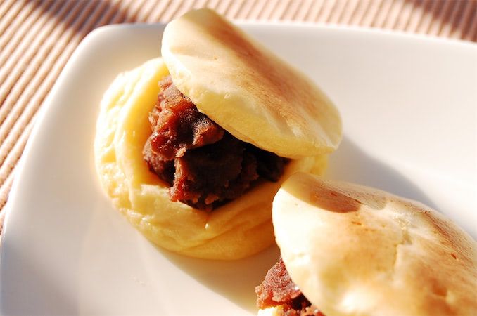 バターと卵が入ってるのでパンケーキ風のコクがあります。そこに、お餅の風味と和の甘味であるあんこがプラスされ、洋と和を同時に感じる不思議なスイーツです。