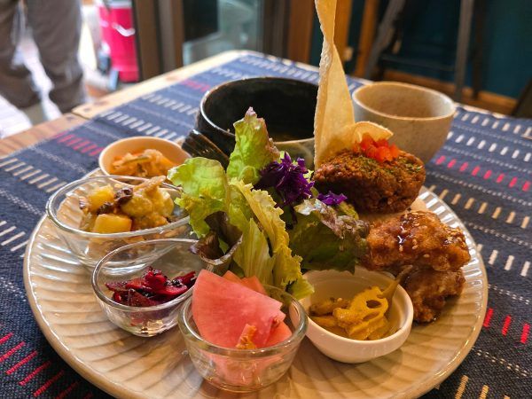 大豆ミートを使用した唐揚げやタコライスはどれもおいしかった ランチプレート1,900円(税込み) オーナー自身の妊娠期から食生活を見直ししたのがきっかけ
