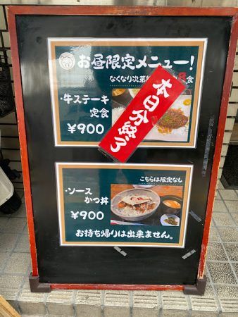 お昼を少し過ぎた時間に行ったら牛ステーキ定食は終了でした。とんかつ狙いで行ったんですが終了ってなると食べたかったなーってなりました。